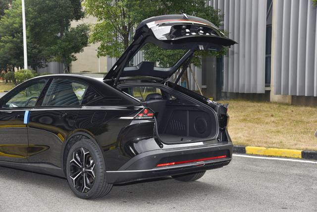 切换至车尾,深蓝L07采用“悬浮跃光”设计,1.2米长的Super Red黄穿式超红光LED尾灯有效拉长了车身宽度比例,动感之中多了几分大气,而且灯带的中央点缀有三角锥形的可发光Logo,与车头形成遥相呼应。此外,该车还配备电动掀背尾门,和无框车门一起展开后显得格外拉风,而且其开门角度支持自定义,开小门拿小件、开大门取大件,方便又省力。